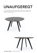 UNAUFGEREGT Ganz unaufgeregt kommt dieser runde Tisch daher und fügt sich seiner Bestimmung einfach ein Tisch zu sein. Für alle Liebhaber des schlichten, zeitlosen Designs oder für Räume die nicht mehr brauchen. 39 MYER + MILLER // MASSIVHOLZTISCHE