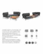 Die Kollektion besteht aus 2 Sofa-Endmodulen - eines links und eines rechts, einem Loungesessel-Modul und einer Ottomane - alle mit pulverbeschichtetem grauem Aluminiumrahmen und Kissen aus wasserabweisendem Stoff. Zur Ergänzung der Sofas gehören zu auch ein Couchtisch und ein Beistelltisch aus wunderschönem Bambus.